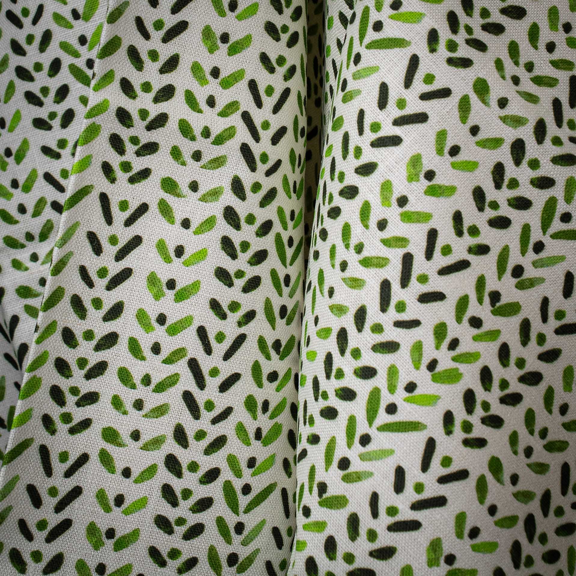 Hand-illustrated designs printed with water-based pigment ink on Belgian linen. Dry clean only. Printed in the USA.