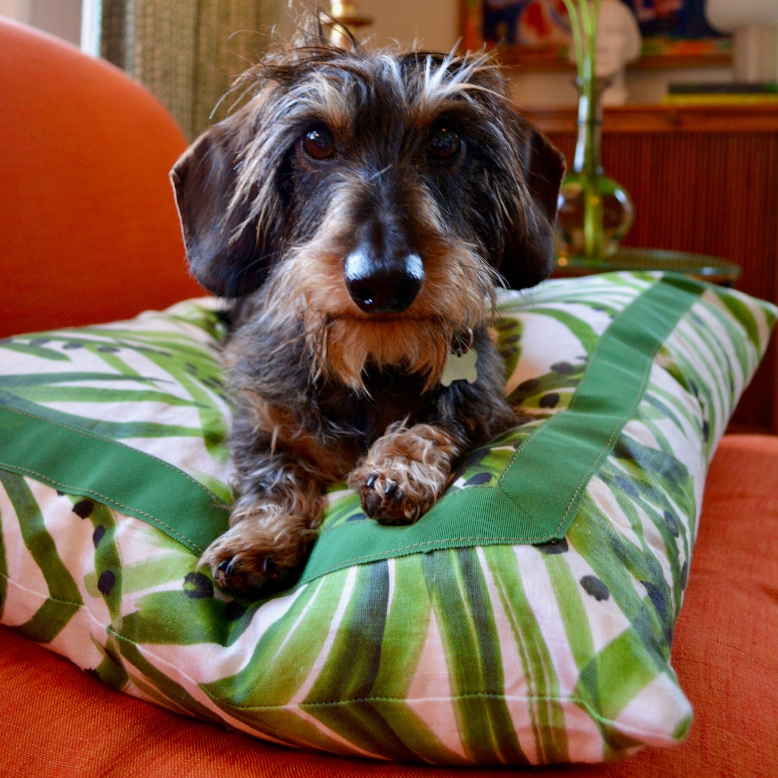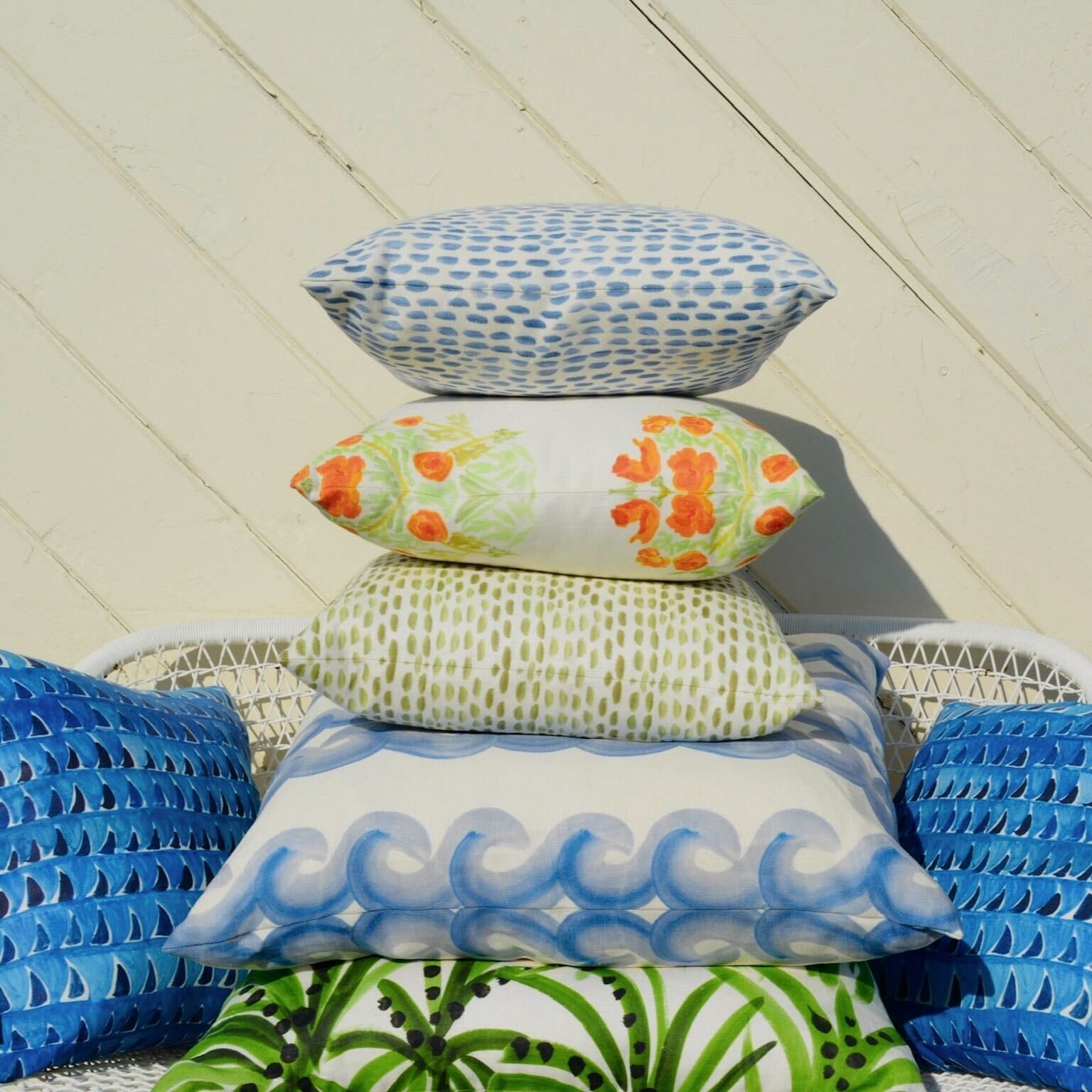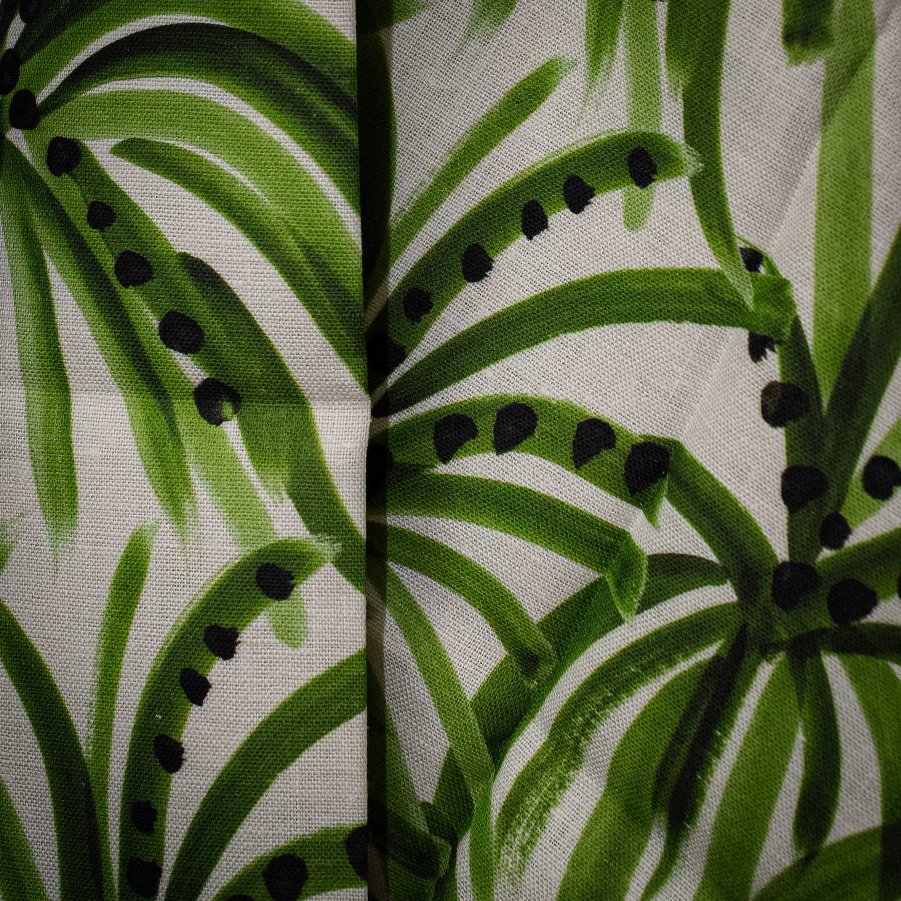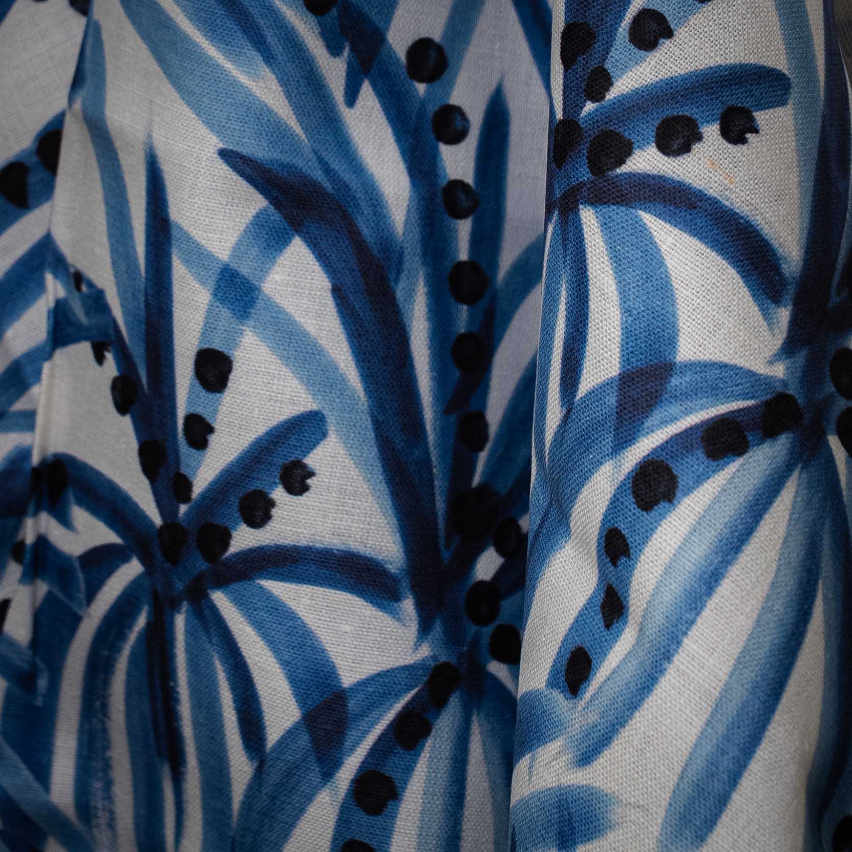 Hand-illustrated designs printed with water-based pigment ink on Belgian linen. Dry clean only. Printed in the USA.