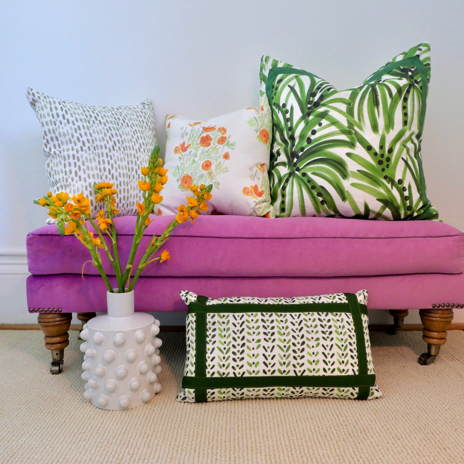 As pictured on 20" x 20" pillow.