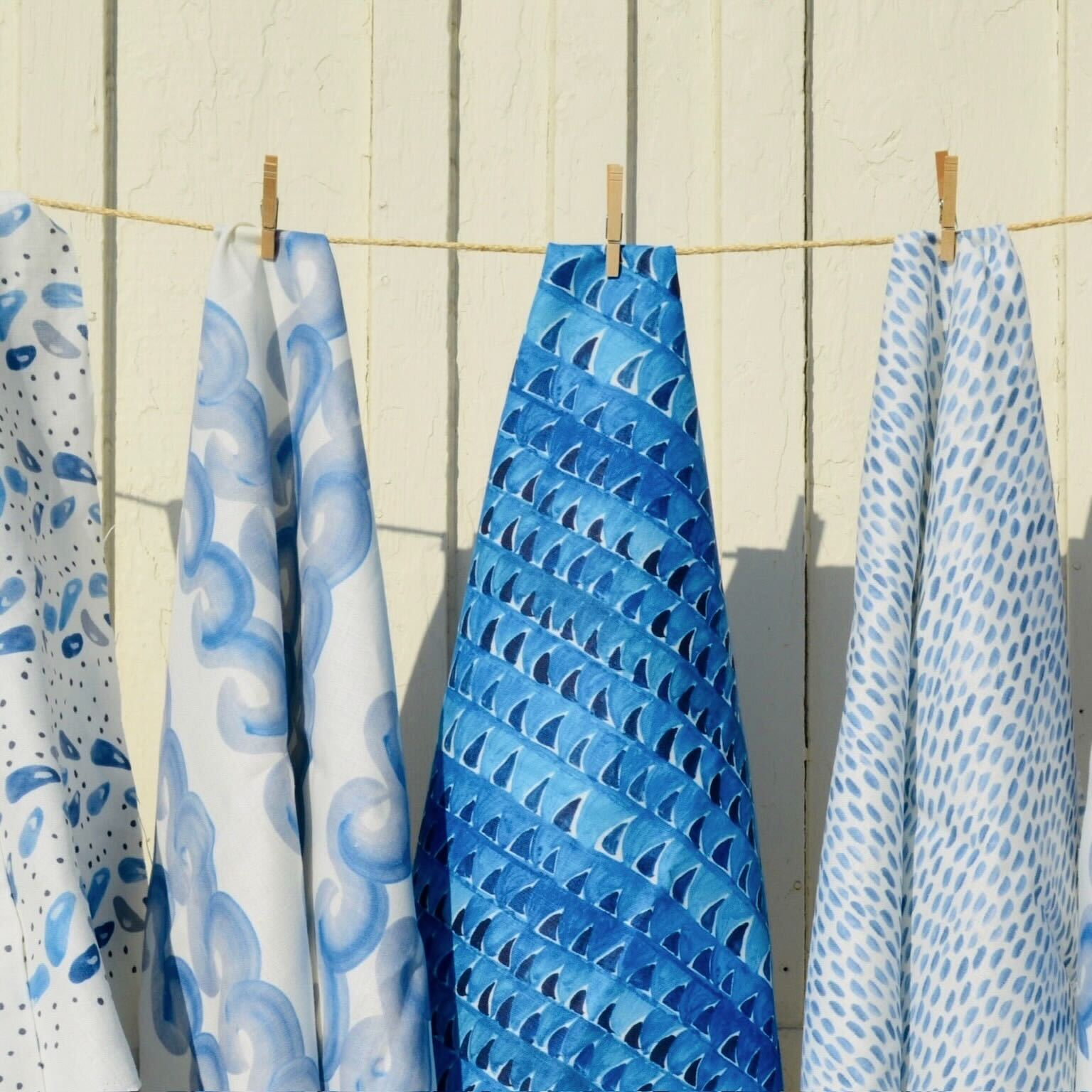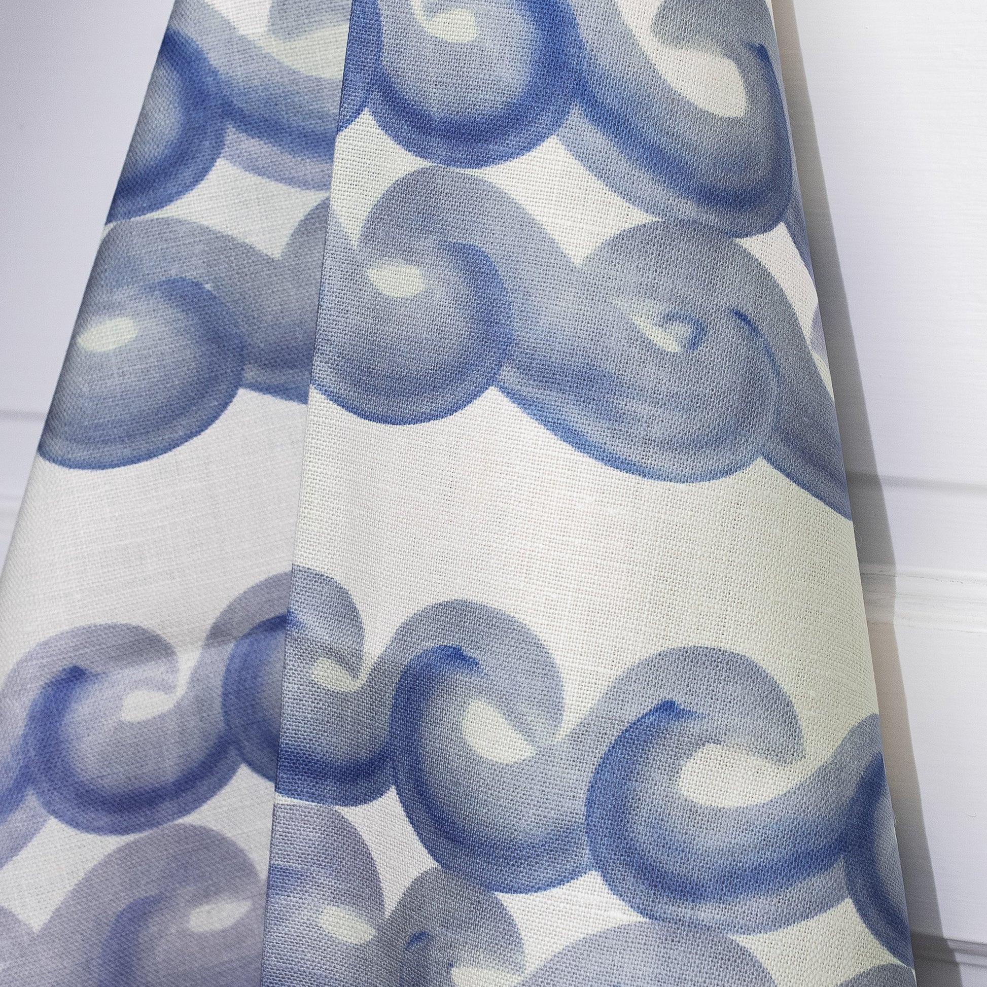 Hand-illustrated designs printed with water-based pigment ink on Belgian linen. Dry clean only. Printed in the USA.
